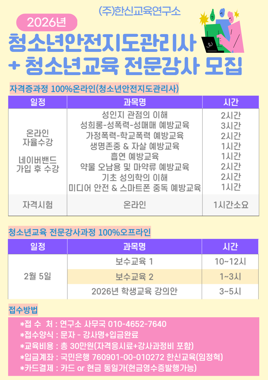 2026년 청소년 교육을 진행하실 전문강사님들을 모십니다.
